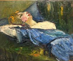 Dans ses deux autoportraits, l’artiste ne s’encombre pas d’anecdotes chichiteuses: elle va à l’essentiel. Dans l’un, elle illustre en quelques traits son caractère que l’on devine altier, voire dominateur. Dans l’autre, la voilà se reposant comme une chatte satisfaite de son sort.